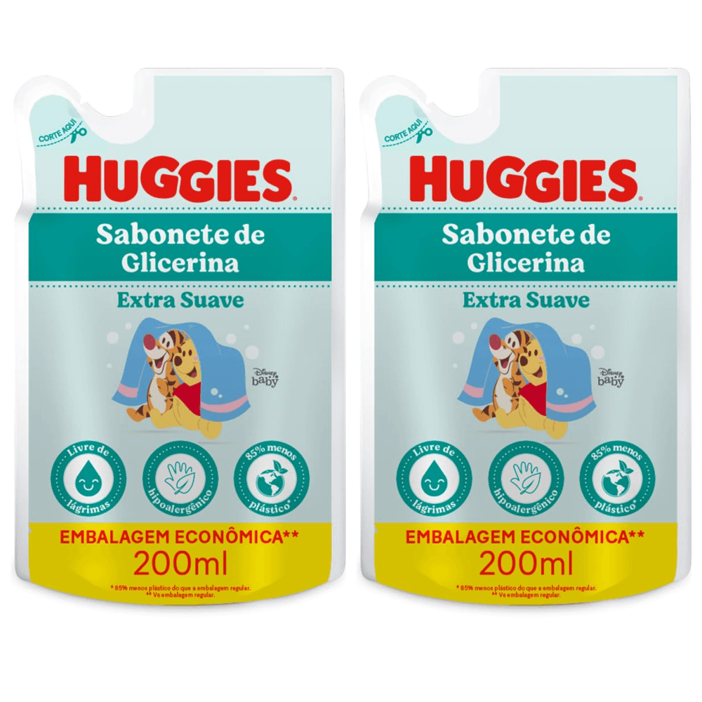 Kit com 2 Unidades de Sabonete Líquido Refil Huggies Extra Suave 200ml