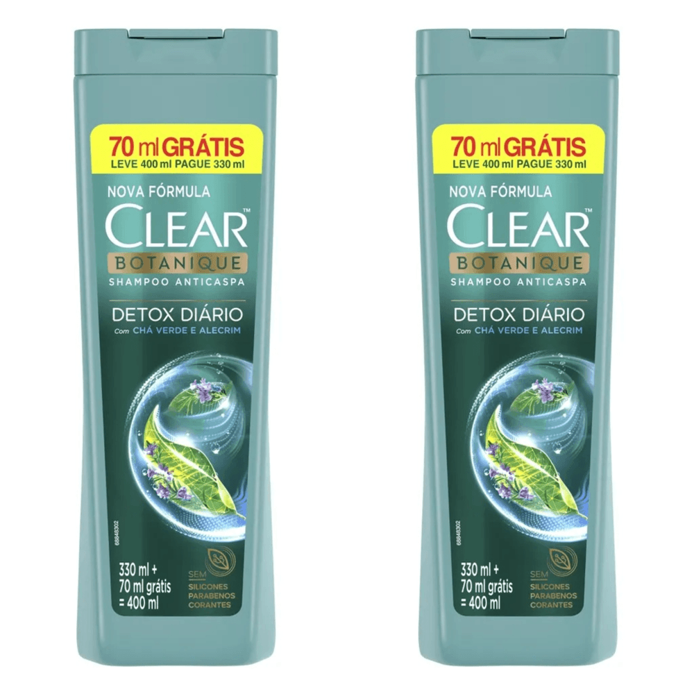 Kit com 2 Unidades de Shampoo Anticaspa Clear Detox Diário 400ml