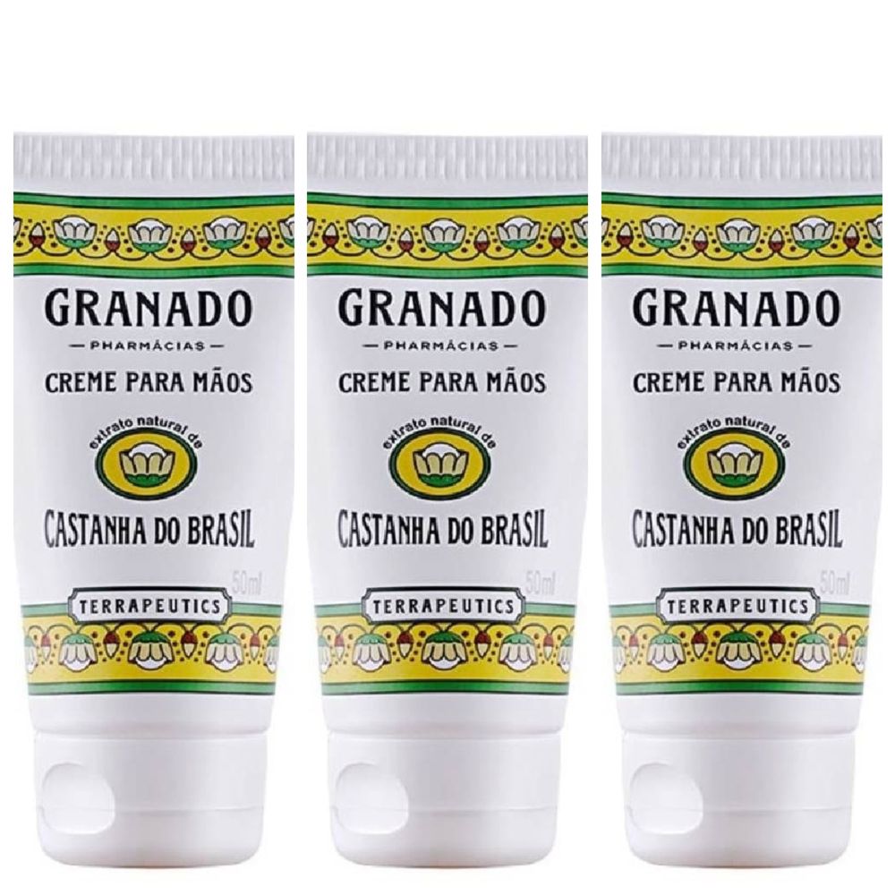 Kit com 3 Unidades de Creme para Mãos Castanha do Brasil Granado Terrapeutics Bisnaga 50ml