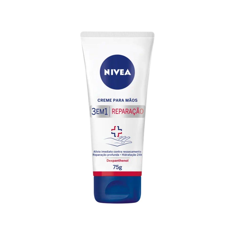 Kit com 3 Unidades de Creme para Mãos Nivea 3 em 1 Reparação com Dexpanthenol 75ml