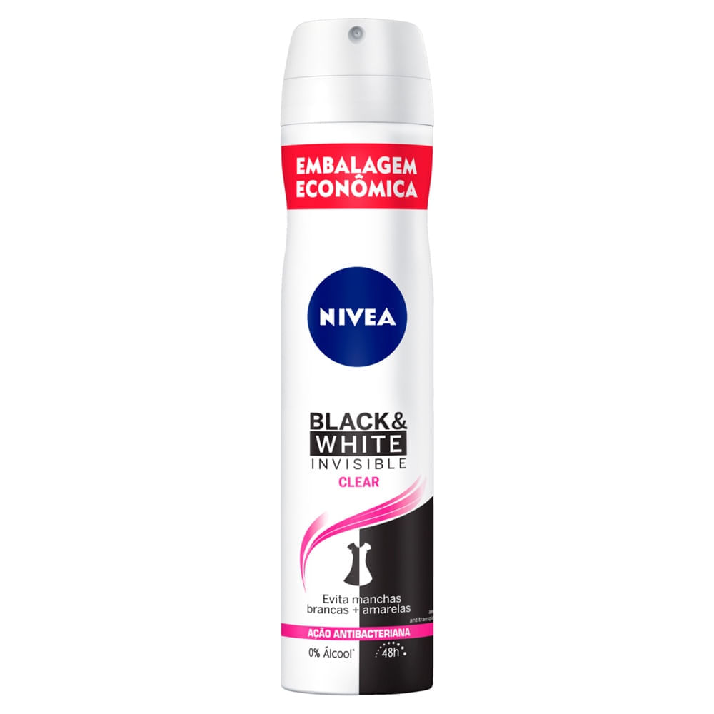 Kit com 3 Unidades de Desodorante Aerosol Nivea Black & White 200 Ml Invisible Clear