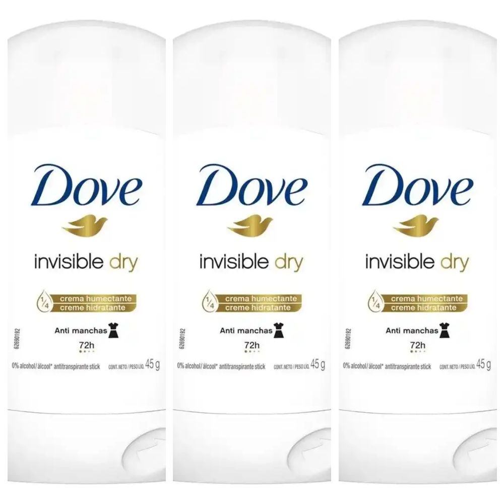 Kit com 3 Unidades de Dove Antitranspirante Stick Invisible Dry 45g