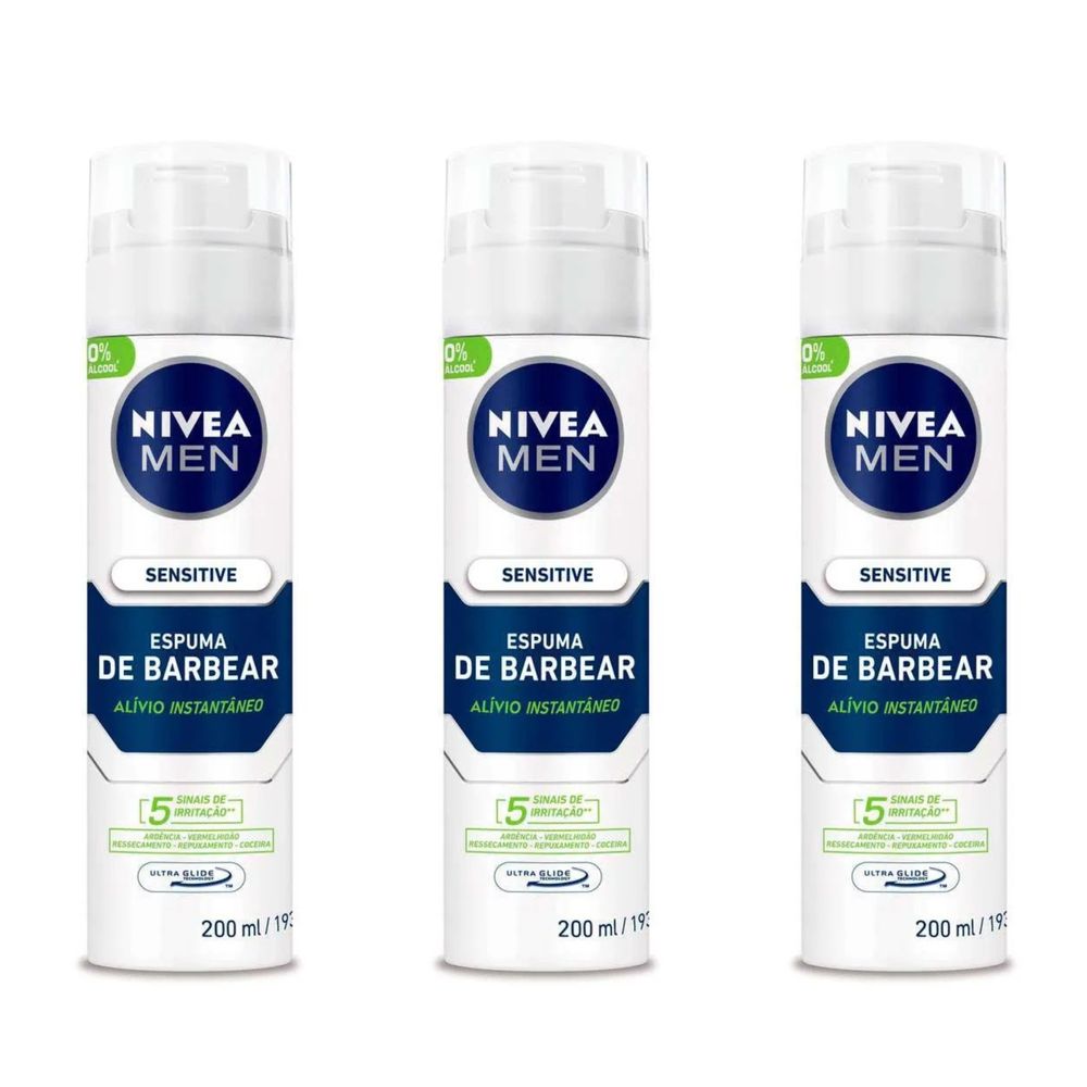 Kit com 3 Unidades de Espuma de Barbear Nivea Men Sensitive com 200ml