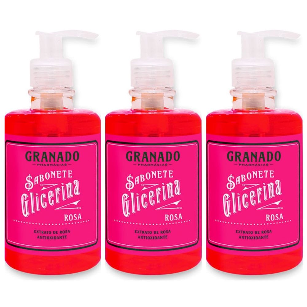 Kit com 3 Unidades de Granado Sabonete Líquido Glicerina Rosa 300ml
