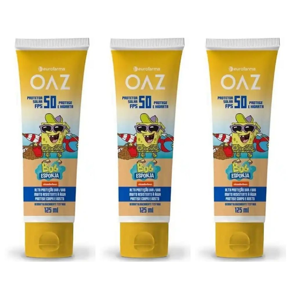Kit com 3 Unidades de Oaz Protetor Solar Bob Esponja Corpo E Rosto 50fps 125ml