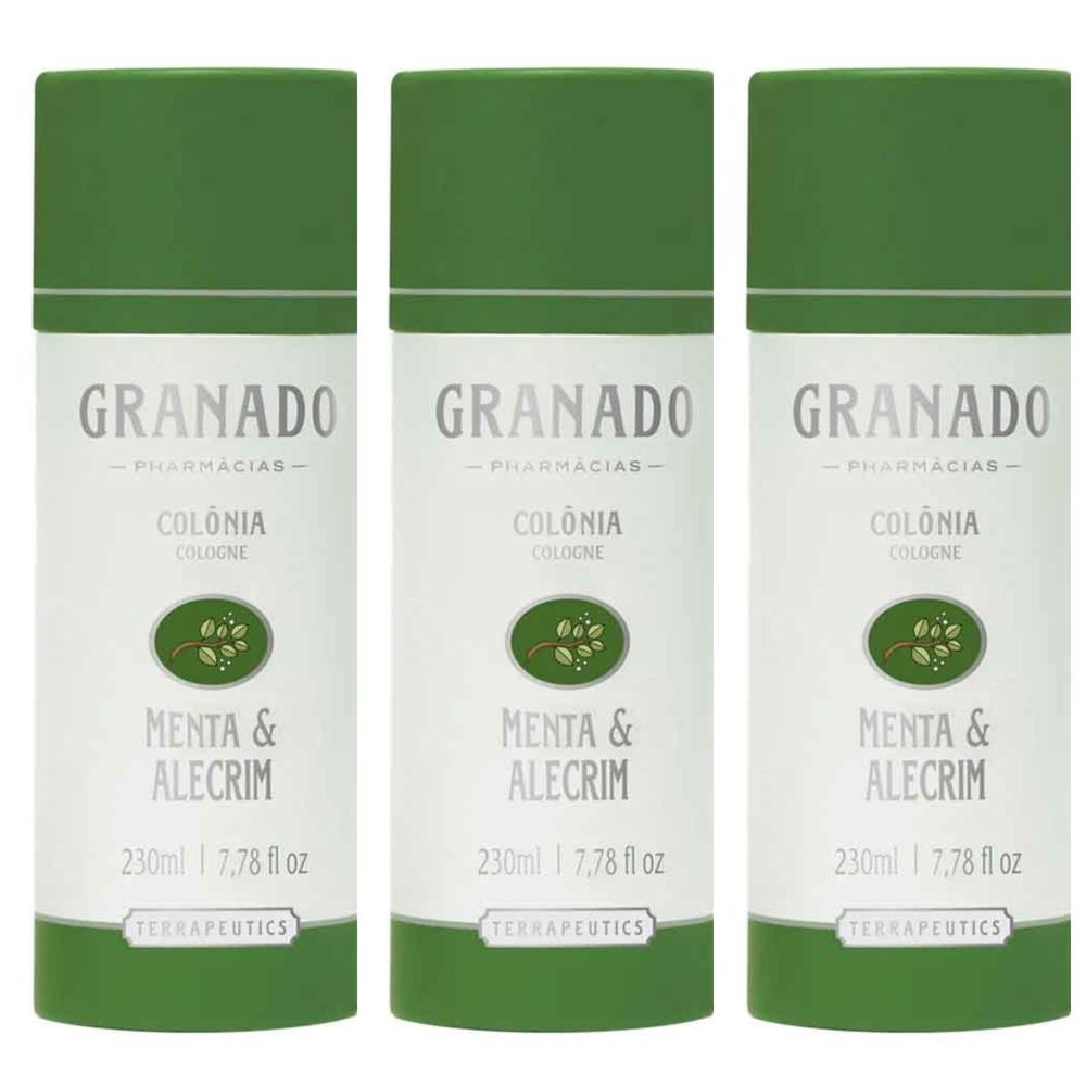 Kit com 3 Unidades de Perfume Unissex Menta & Alecrim Granado Terrapeutics Eau De Cologne 230ml