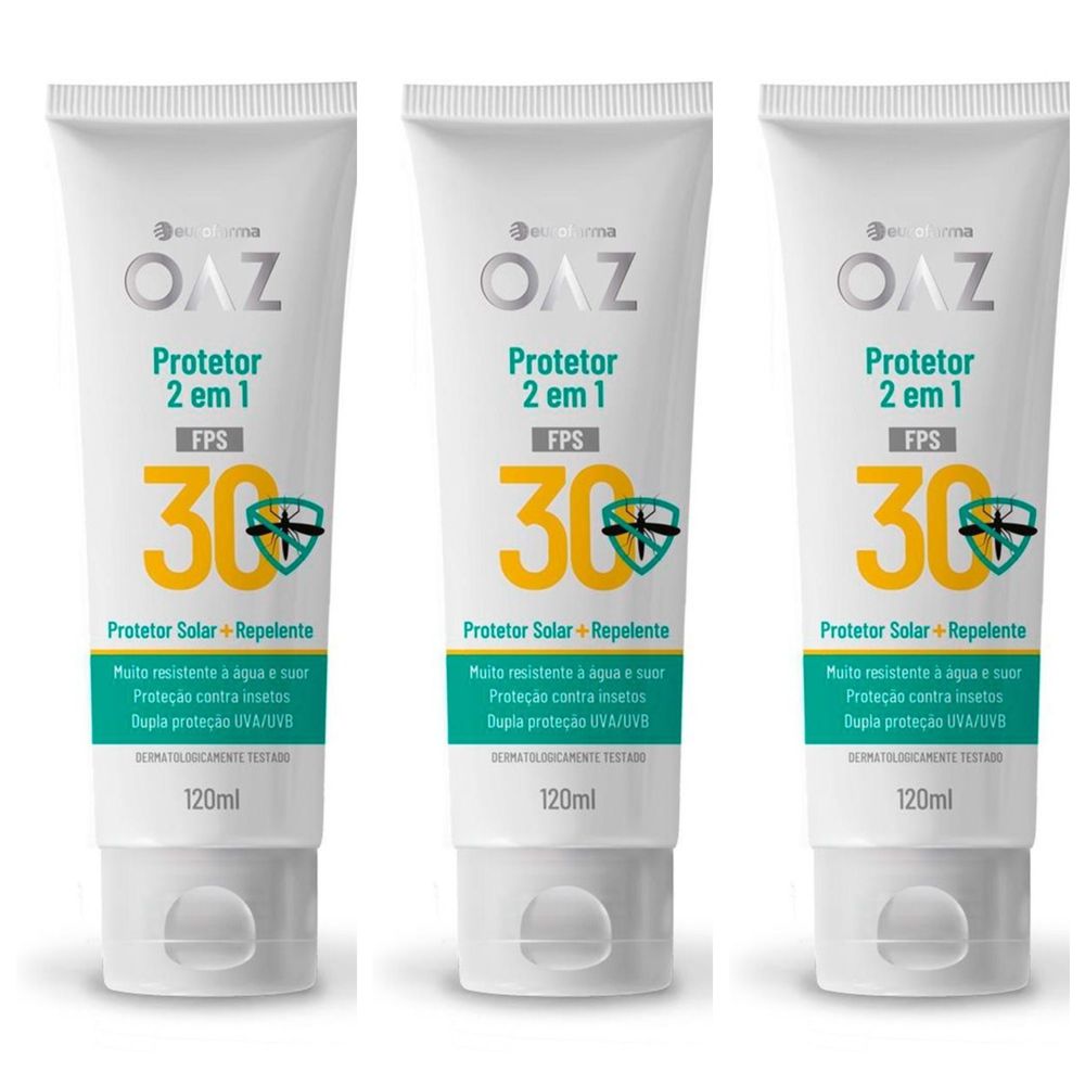 Kit com 3 Unidades de Protetor Solar 2 Em 1 Oaz Fps30 Repelente Com 120Ml Eurofarma
