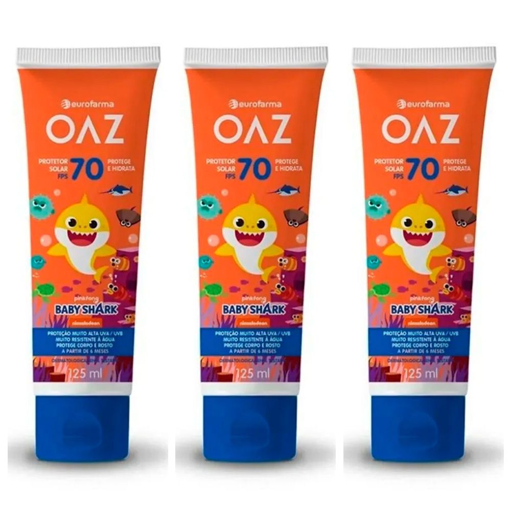 Kit com 3 Unidades de Protetor Solar Oaz Baby FPS70 125ml