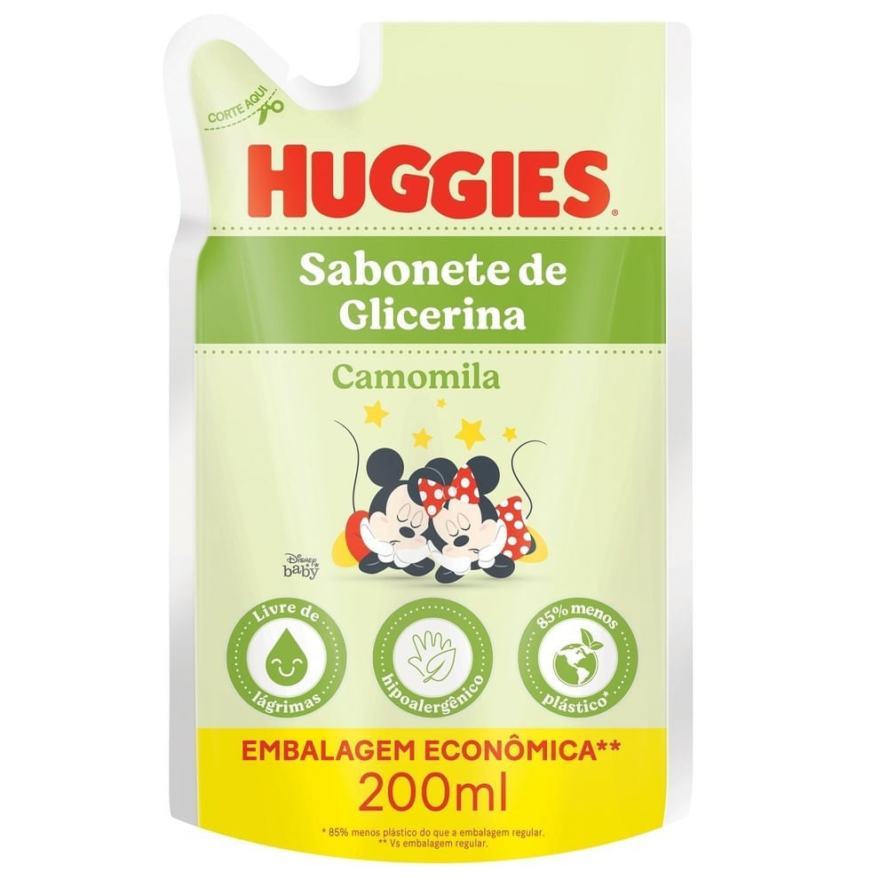 Kit com 3 Unidades de Sabonete Líquido Glicerina Huggies Camomila Refil 200ml