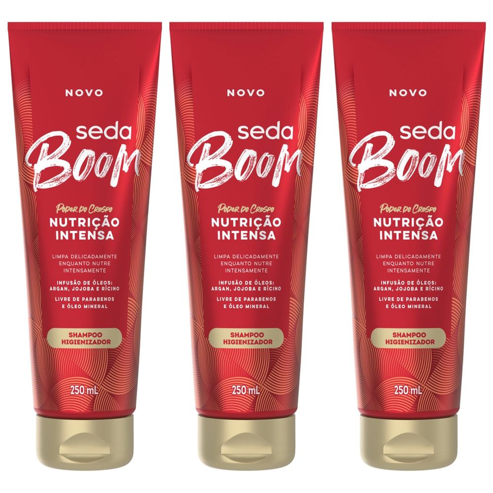 Kit com 3 Unidades de Seda Boom Shampoo Nutrição 250ml