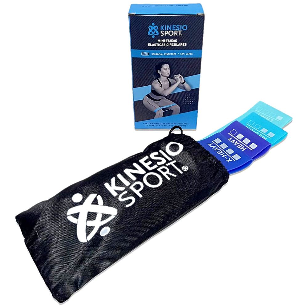 Kit com 4 Mini Bands Elásticas KinesioSport 25cm x 5cm