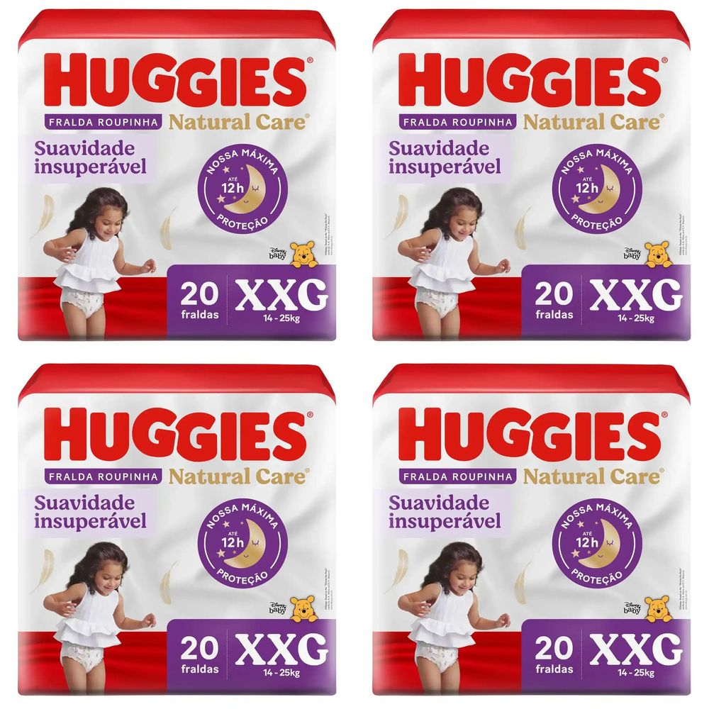 Kit com 4 Unidades de Fralda Calça Huggies Natural Care Roupinha Mega XXG 20 unidades cada
