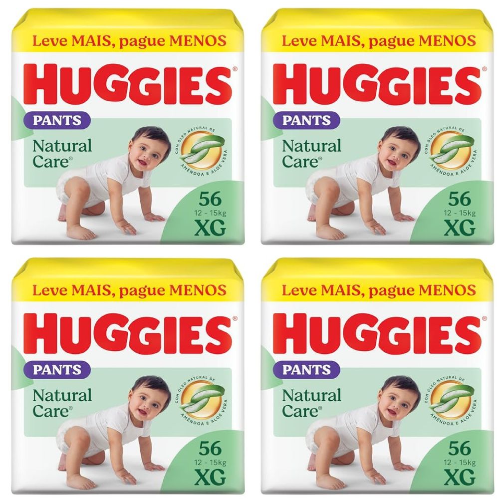 Kit com 4 Unidades de Fralda Huggies Natural Care Roupinha XG 56 unidades cada