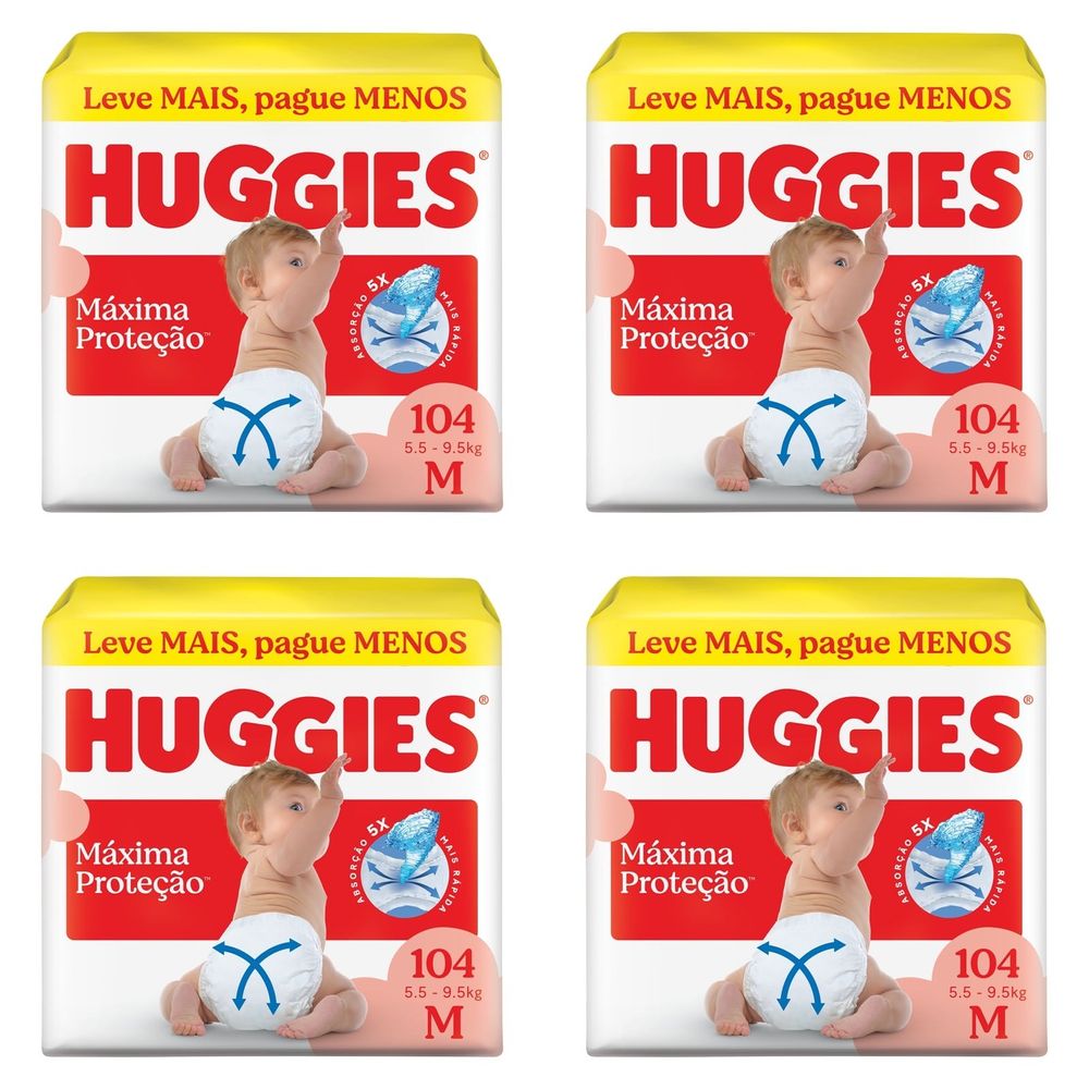 Kit com 4 Unidades de Huggies Fralda Descartável Máxima Proteção M 104 Unidades cada