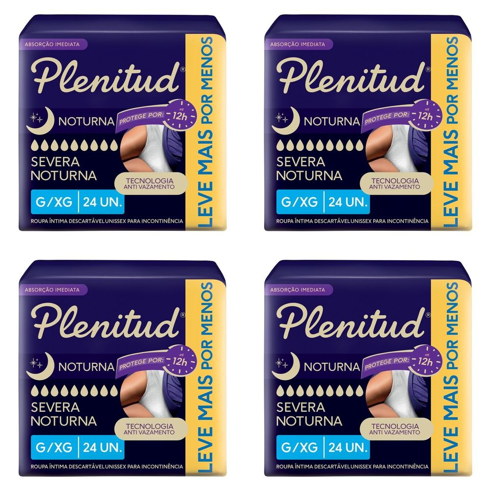Kit com 4 Unidades de Plenitud Roupa Intima Noturna para incontinência urinaria G/XG 24 unidades cada