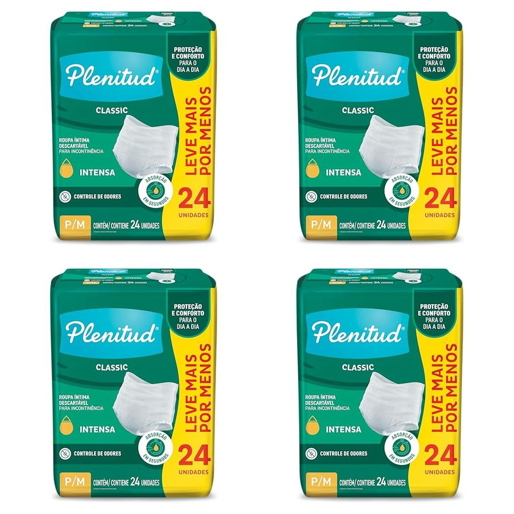 Kit com 4 Unidades de Roupa Íntima Descartável Plenitud Classic Intensa P/M 24 Unidades cada
