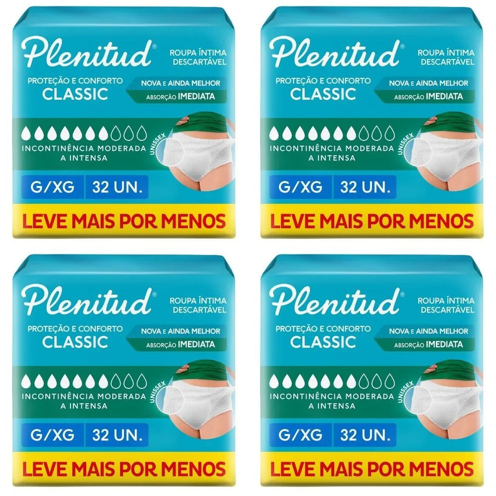 Kit com 4 Unidades de Roupa Íntima Plenitud Classic G-XG Com 32 Unidades cada