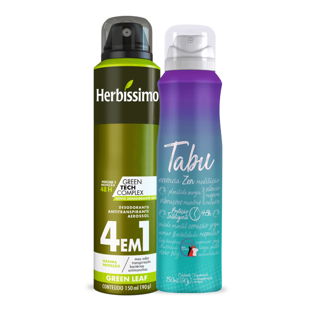 Kit Desodorante Aerossol Antitranspirante Herbissimo Green Leaf e Tabu Zen 150Ml