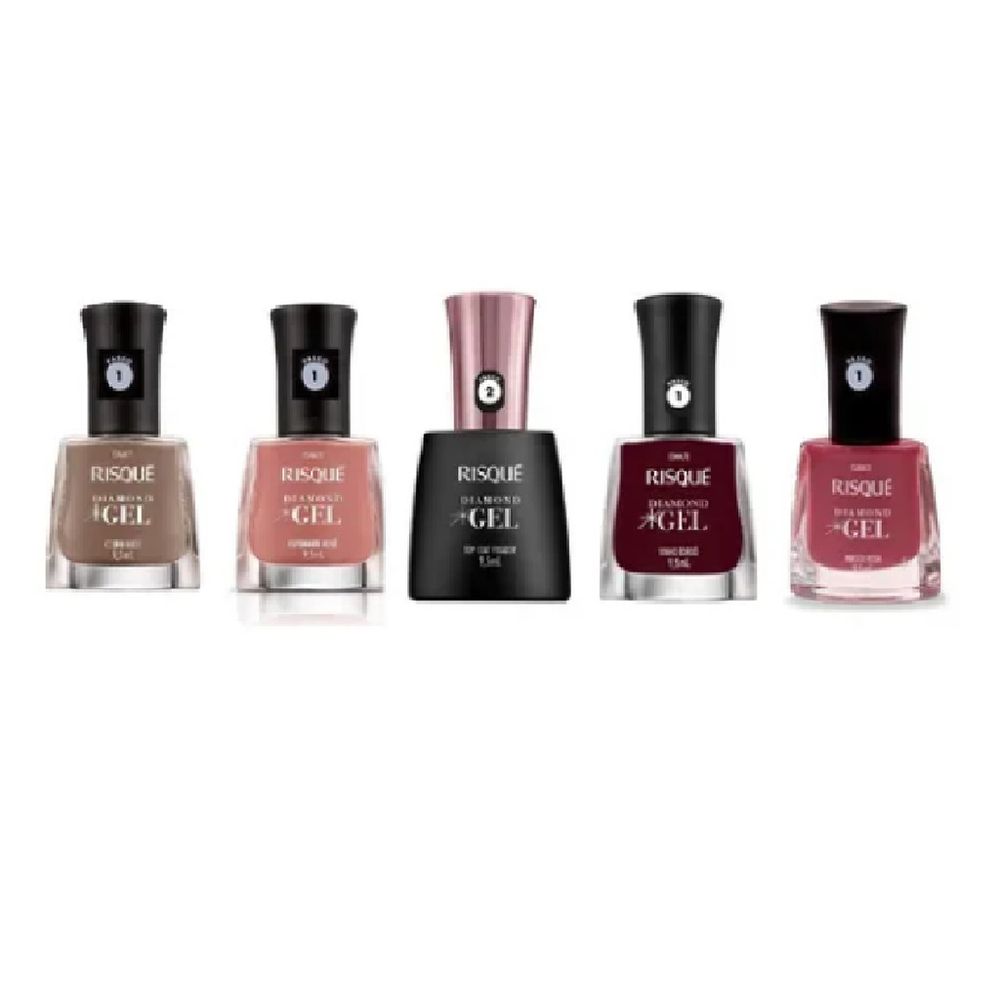 Kit Esmalte Risque Diamond Gel 4 Cores E 1 Top Coat Fixador