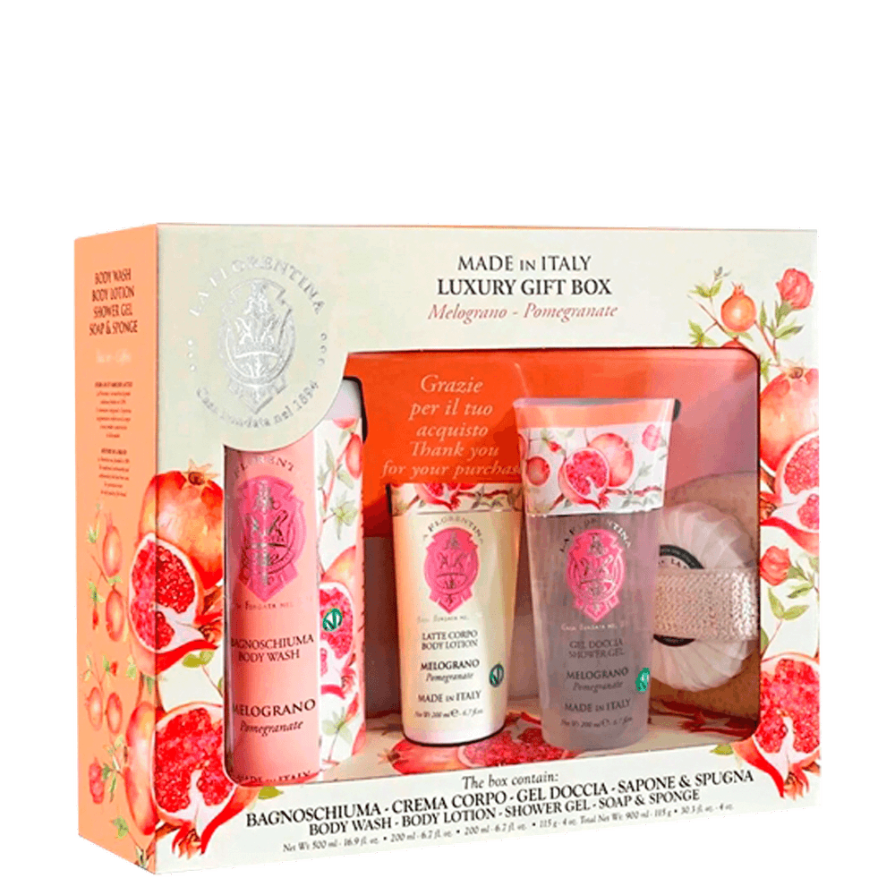 Kit Florentina Spa Pomegranate - Sabonete Liquido 500ml + Shower Gel 200ml + Body Lotion 200ml + Sabonete 115g + Esponja de Banho NULO