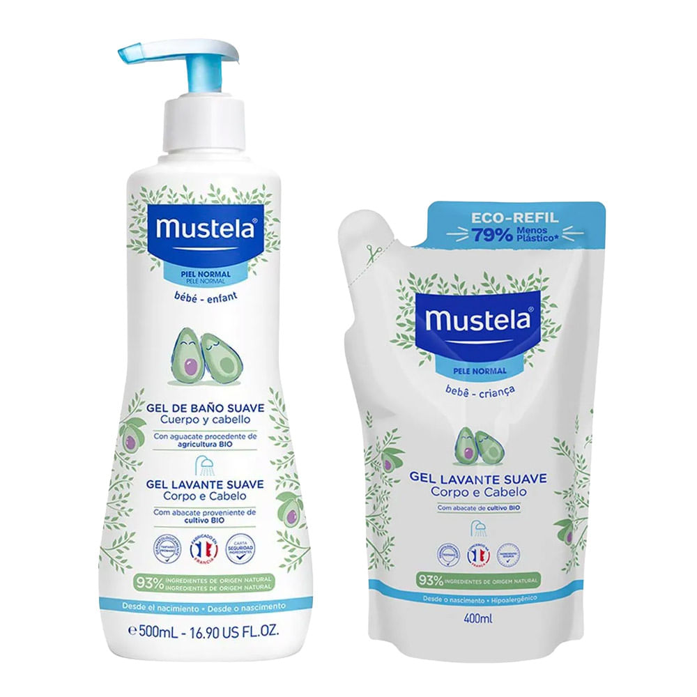 Kit Gel Lavante Mustela Bebê com Abacate Orgânico 500ml + Refil 400ml