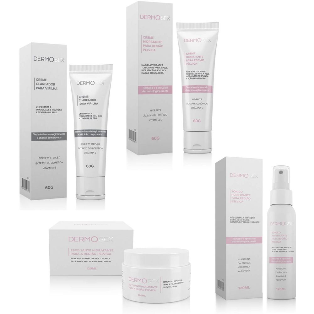 Kit Linha Dermosex Clareador Esfoliante Hidratante E Tônico
