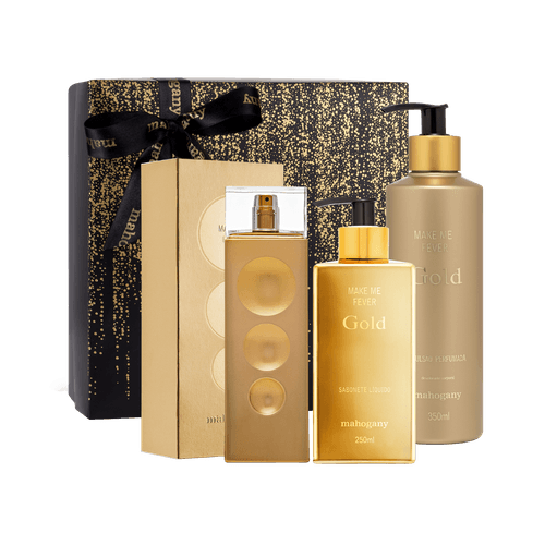 Kit Make me Fever Gold com Fragrância, Sabonete Líquido, Hidratante e Caixa Preta