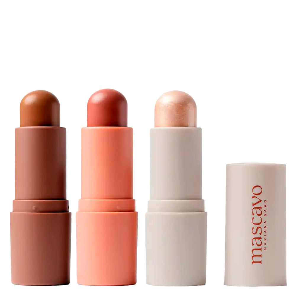 Kit de Maquiagem Mascavo Essentials Trio - Morning Dew – Contorno, Blush e Iluminador em BastãoKit indicado para todos os tipos de pele. O Kit Mascavo Essentials Solstice Trio reúne três produtos em bastão de alta performance 1 Contorno, 1 Blush e 1 Iluminador que juntos oferecem praticidade, versatilidade e acabamento impecável para qualquer produção, do dia a dia às ocasiões especiais. Sua fórmula cream-to-powder desliza suavemente sobre a pele, garantindo textura cremosa na aplicação e acabamento aveludado ao secar. Enriquecido com óleos nutritivos e esqualano vegetal, o trio não só realça a beleza natural, como também cuida da pele, mantendo-a hidratada e com aspecto saudável. Benefícios do Kit Essentials Trio Textura cremosa que se transforma em acabamento aveludado.Multiuso: produtos versáteis para diferentes áreas do rosto.Permite construção de camadas, de natural a intenso.Embalagem em bastão prática, ideal para levar na bolsa.Indicado tanto para iniciantes quanto para profissionais. Ação/Resultado dos AtivosÓleo de Macadâmia – Nutre e hidrata, deixando a pele macia e viçosa. Óleo de Camélia – Rico em antioxidantes, protege e revitaliza a pele. Esqualano Vegetal – Mantém o equilíbrio e a hidratação sem pesar. Textura Cream-to-Powder – Proporciona fixação confortável e acabamento natural. Produtos que compõem o KitContorno Shape Stick 6g – Cor Latte (subtom quente)Define os traços faciais, trazendo profundidade e elegância ao rosto.Blush Flush Stick 6g – Cor MapleAdiciona cor saudável e natural às maçãs do rosto, com efeito radiante e de longa duração.Iluminador Glow Stick 6g – Cor ChampagneGarante luminosidade sofisticada, destacando pontos estratégicos do rosto com brilho sutil e elegante. Como Usar o Kit Mascavo Essentials Trio - Morning DewContorno: aplique nas áreas que deseja dar profundidade, como laterais do nariz, abaixo das maçãs do rosto, têmporas e linha da mandíbula. Esfume com pincel, esponja ou dedos.Blush: deposite diretamente nas maçãs do rosto e esfume em direção às têmporas para um efeito lifting natural.Iluminador: aplique nos pontos altos do rosto, como ossinho da bochecha, dorso do nariz, arco do cupido e abaixo das sobrancelhas.Dica: construa camadas conforme a intensidade desejada. Precauções: suspenda o uso em caso de sensibilidade. Conserve o produto bem fechado, longe da luz e do calor. Mantenha fora do alcance de crianças.Itens do Kit: Blush;Itens do Kit: Contorno;Itens do Kit: Iluminador;Efeito: Natural;Origem: Nacional;Tipo de Kit: Regular;Gênero: Unissex;Público: Adulto;Quantidade de Itens: 3;Itens Inclusos: 1 Mascavo Flush Stick Blush Bastão Maple - 6g 1 Mascavo Glow Stick Iluminador em Bastão Champagne - 6g 1 Mascavo Shape Stick Contorno em Bastão Latte - 6g;Observações: Imagem Meramente Ilustrativa.;Sugestão de Uso: Comece aplicando o Shape Stick Contorno Latte nas áreas que deseja definir, como abaixo das maçãs do rosto, laterais do nariz e linha do maxilar. Esfume bem com os dedos, esponja ou pincel para um efeito natural. Em seguida, use o Flush Stick Blush Maple nas maçãs do rosto e espalhe suavemente em direção às têmporas para um toque de cor saudável. Finalize com o Glow Stick Iluminador Champagne nos pontos altos do rosto – como topo das maçãs, ponta do nariz, arco do cupido e abaixo das sobrancelhas – para um brilho sofisticado. Ideal para o dia a dia ou para compor uma make mais elaborada.;Precauções: Manter longe do alcance de crianças.;Específico para: Face;Tipo de Pele: Todos os Tipos;Textura: Creme;