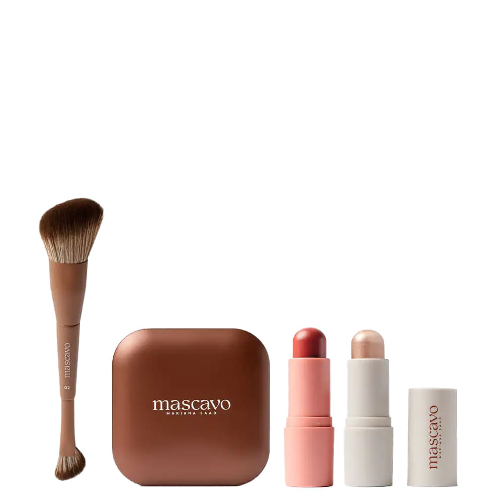 Kit de maquiagem indicado para realçar a beleza natural com luminosidade suave e cor adaptável a todos os tons de pele. O Kit Masavo Glow Together Set, composto pelo Blush em Bastão Multiuso com textura balm, Iluminador em Bastão Cremoso com pérolas ultrafinas, Mascavo Summer Glow Bronzer Terracota 8 gramas e Pincel Pro Series 02, oferece uma maquiagem multifuncional com acabamento glow de longa duração que respeita a textura natural da pele.O Blush em Bastão Multiuso proporciona pigmentação construível para um rubor natural que realça as maçãs do rosto sem obstruir os poros. O Iluminador em Bastão Cremoso, formulado com partículas refletoras ultrafinas, cria um glow radiante imediatamente perceptível. O Mascavo Summer Glow Bronzer Terracota oferece tonalidade quente e versátil, enquanto o Pincel Pro Series garante aplicação precisa e esfumado perfeito para resultados profissionais.