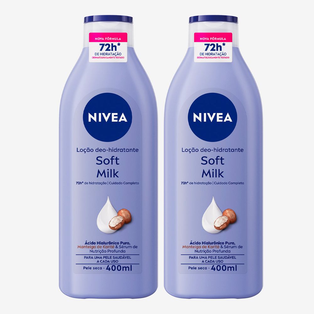 Kit Loção Hidratante Desodorante Nivea Soft Milk 2 Unidades de 400ml