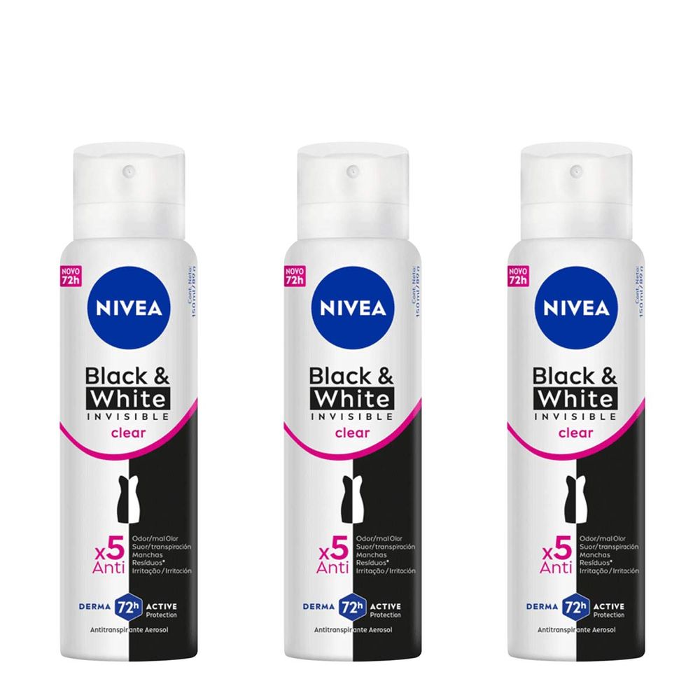 Kit Nivea Antitranspirante Invisible Black&White Clear Aerosol 3 Unidades de 150ml