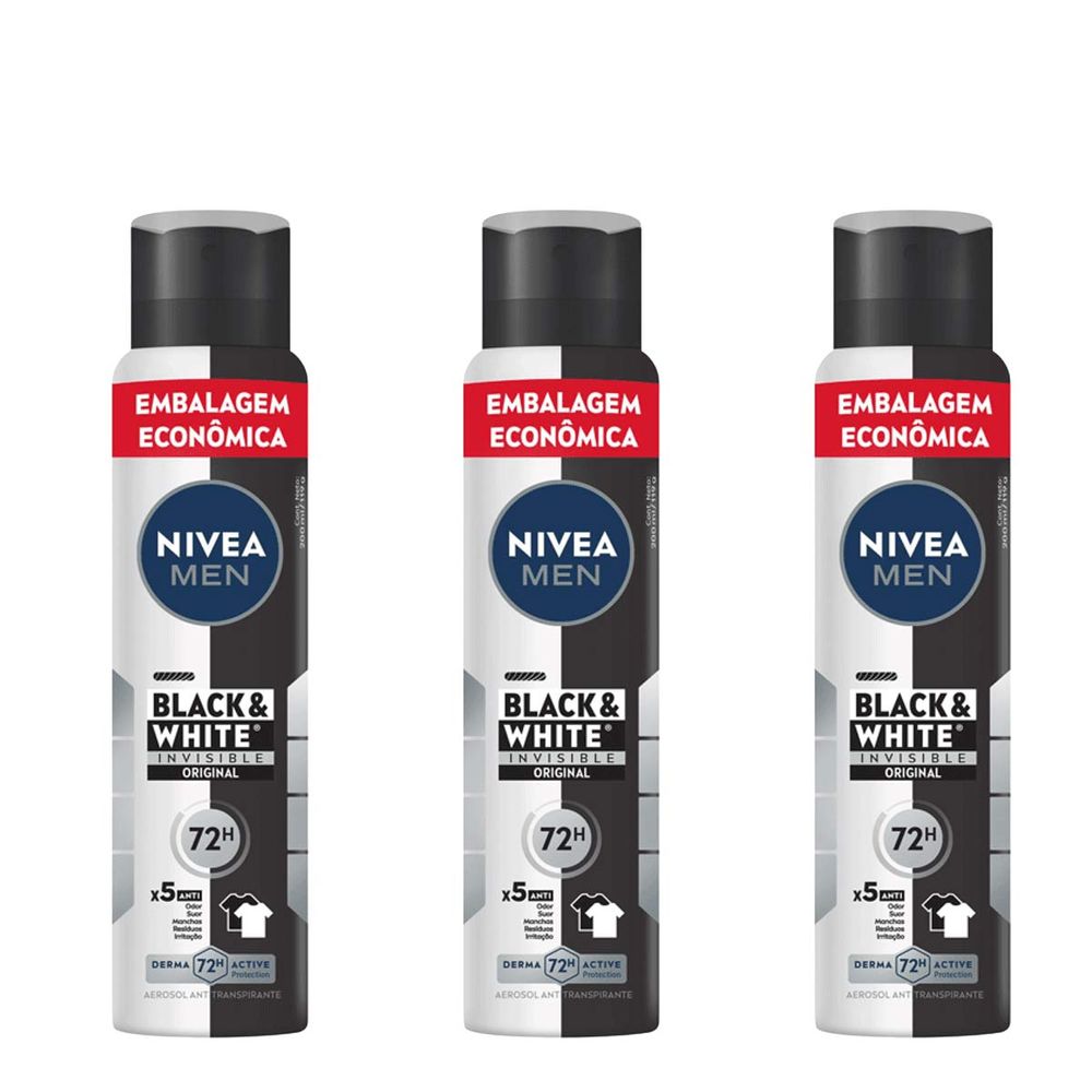 Kit Nivea Men Antitranspirante Black&White Invisible Aerossol 3 Unidades de 200ml