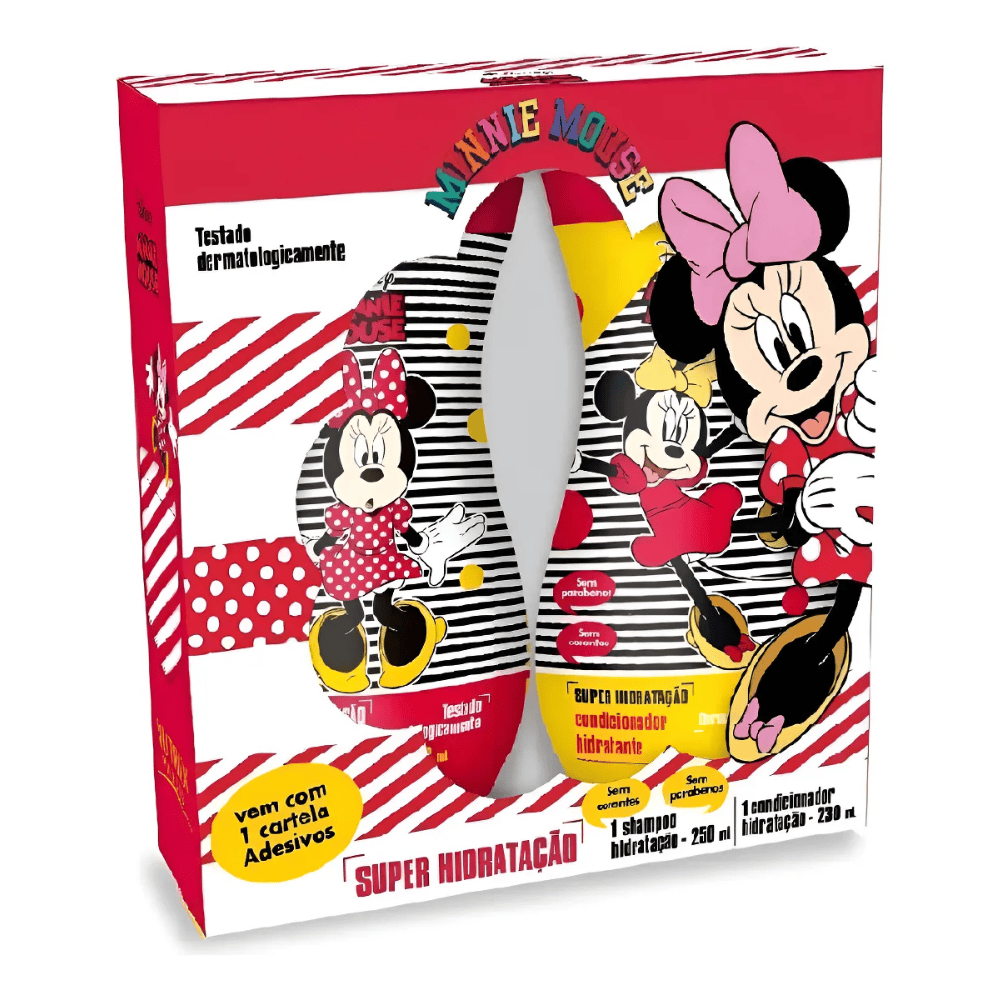 Hidratação para todos os tipos de cabelos O Shampoo Minnie Cabelos Hidratados tem formulação suave sem corantes e sem parabenos que aliada ao Agente especial Pró-Nutri promove limpeza suave e hidratação dos fios, deixando os cabelos macios, brilhantes e delicadamente perfumados. Dermatologicamente testado é seguro e pode ser usado diariamente.