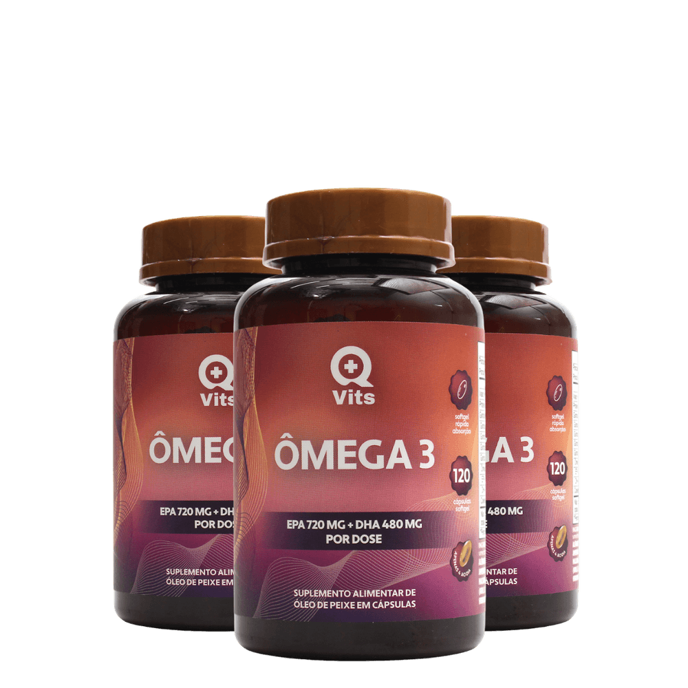Kit Ômega 3 1000mg Concentrado EPA 720mg DHA 480mg QMaisVits 360 Cápsulas Softgel