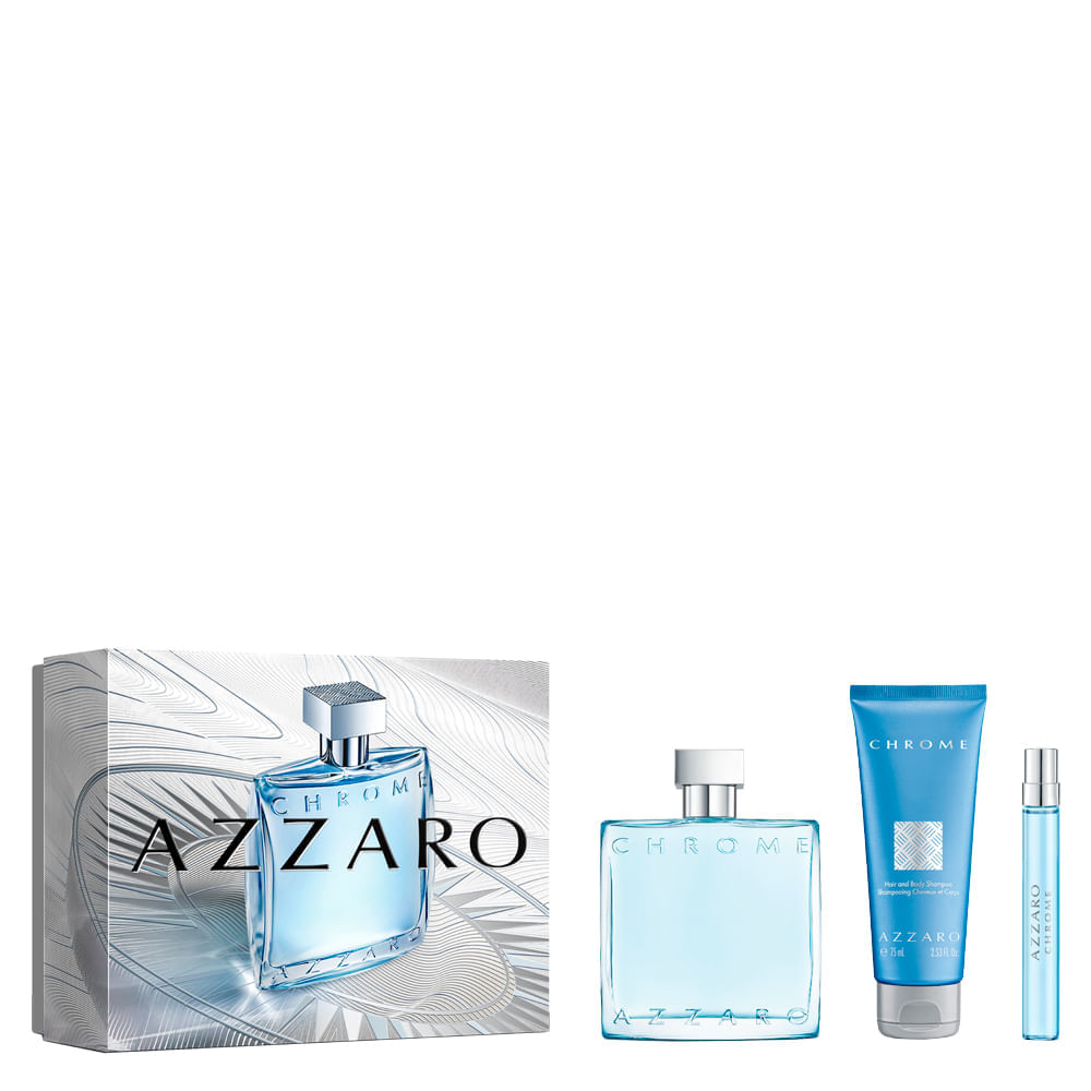 Kit Perfume Azzaro Chrome Masculino - Eau de Toilette 100ml + Miniatura 10ml + Loção 75ml - Coffret