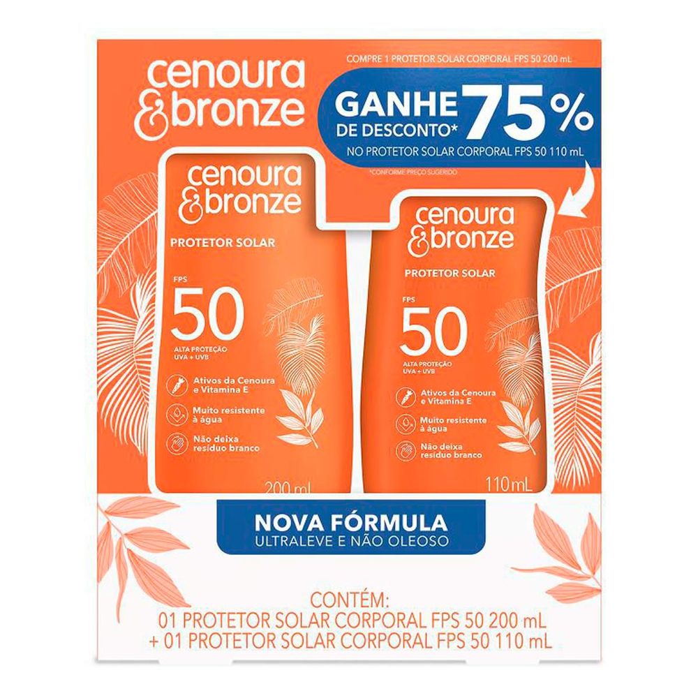 Kit Protetor Solar FPS 50 200ml + Protetor Solar FPS 50 110ml Cenoura & Bronze