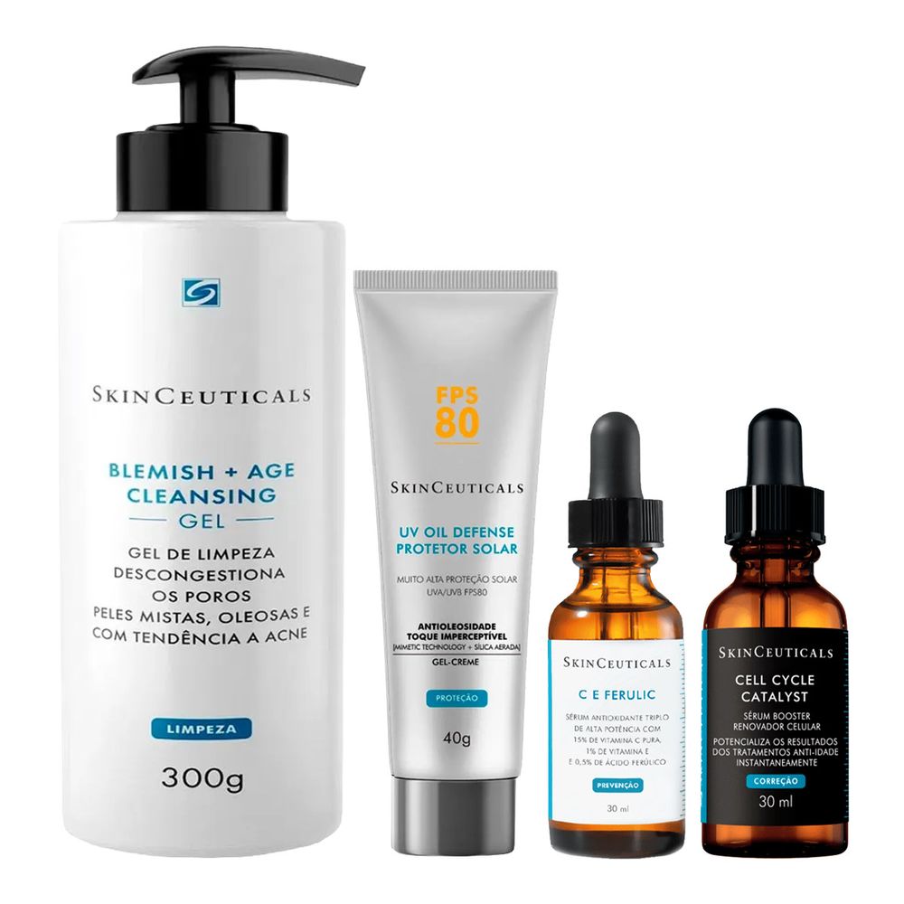 Kit Skinceuticals Gel Blemish Age 300g + Sérum Cell Cycle Catalyst 30ml + Sérum Vitamina C 30ml + Protetor FPS 80 UV 40g
