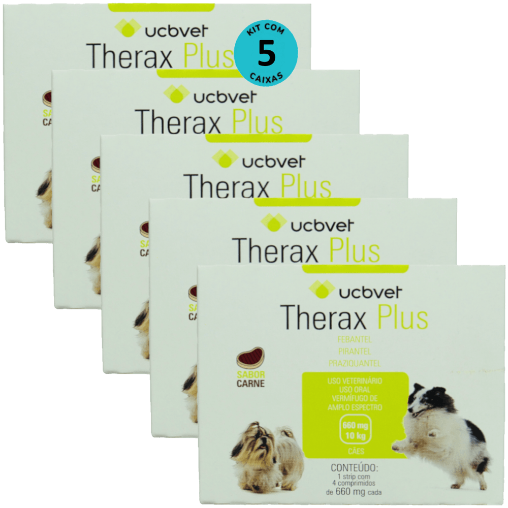 Kit Vermífugo Therax Plus 660mg C/4 comp. UCBVET C/ 5 unidades