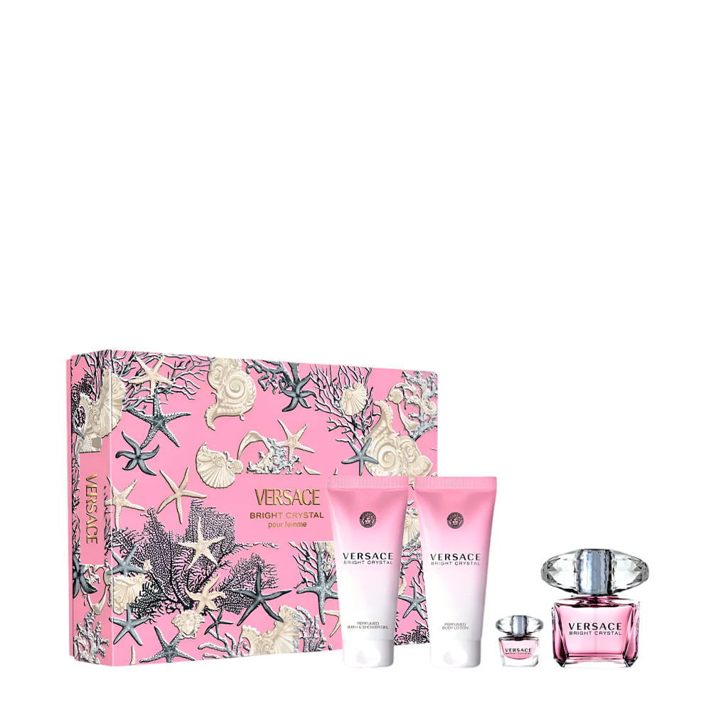Kit Versace Bright Crystal Feminino - EDT 90ml + 5ml + BL 100ml + SG 100ml