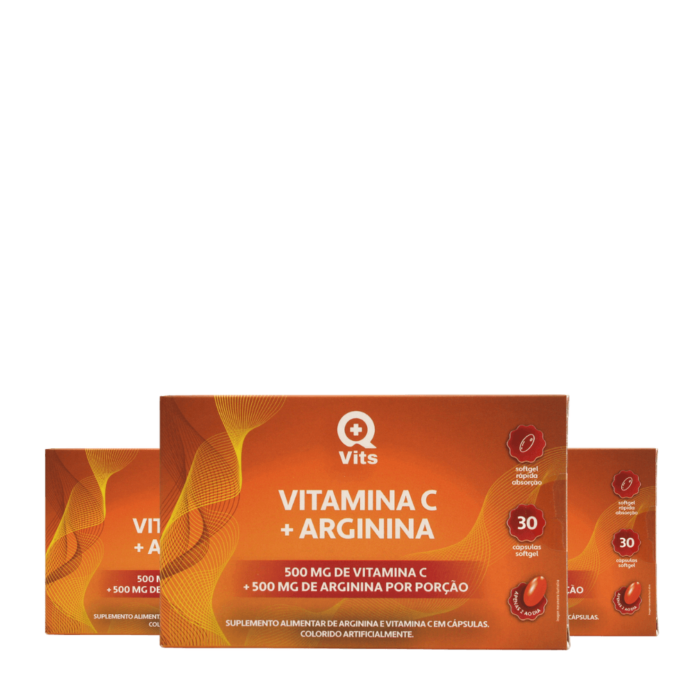 Vitamina C + Arginina 500mg: Suplemento para Imunidade e Combate ao Cansaço com Cápsulas Softgel de Rápida Absorção para Mais Energia e Saúde - VIT-228 A Vitamina C + Arginina 500mg QMaisVits é um suplemento vitamínico que combina os benefícios da vitamina C com a arginina para oferecer suporte completo ao sistema imunológico, além de promover mais energia e combater o cansaço físico e mental. Esta combinação poderosa auxilia na proteção contra os danos causados pelos radicais livres, melhora o metabolismo energético e favorece a saúde da pele e articulações. A vitamina C é um antioxidante essencial que fortalece o sistema imunológico e auxilia na absorção de ferro dos alimentos, ajudando a prevenir a anemia. Além disso, ela desempenha um papel fundamental na formação do colágeno, proteína que dá estrutura à pele, cabelos e unhas, promovendo mais elasticidade e firmeza. A vitamina C também ajuda a proteger as células contra os danos oxidativos, prevenindo o envelhecimento precoce e aumentando a resistência do corpo contra infecções. A arginina, por sua vez, é um aminoácido importante que ajuda a melhorar a circulação sanguínea e a função cardiovascular, promovendo o relaxamento dos vasos sanguíneos. Isso facilita o fluxo de sangue, ajudando a manter a pressão arterial sob controle e aumentando o desempenho físico. Além disso, a arginina também é conhecida por sua capacidade de melhorar a síntese de proteínas e apoiar a recuperação muscular, sendo especialmente útil para pessoas fisicamente ativas ou que desejam aumentar sua disposição no dia a dia. Um dos grandes diferenciais da Vitamina C + Arginina da QMaisVits é o formato de cápsulas softgel, que garante uma rápida absorção dos nutrientes e facilita a ingestão. As cápsulas são fáceis de engolir e proporcionam uma entrega eficiente dos ingredientes ativos ao organismo, oferecendo resultados rápidos e visíveis. Este suplemento passa por rigorosos processos de purificação e testes de qualidade para garantir que cada cápsula contenha apenas ingredientes puros e de alta qualidade, assegurando que você obtenha o máximo dos benefícios oferecidos pela vitamina C e pela arginina. Ao incluir o Vitamina C + Arginina 500mg QMaisVits na sua rotina diária, você estará reforçando seu sistema imunológico, combatendo o cansaço e promovendo uma saúde mais equilibrada e cheia de energia Modo de uso: Recomenda-se tomar 2 cápsulas ao dia, junto das principais refeições, para garantir uma absorção ideal dos nutrientes. Principais Benefícios do Produto:. Fortalece o sistema imunológico com vitamina C.. Combate o cansaço físico e mental com a ajuda da arginina.. Melhora a circulação sanguínea e apoia a função cardiovascular.. Auxilia na absorção de ferro e na prevenção de anemia.. Cápsulas softgel de rápida absorção e fácil ingestão.. Suporta a formação de colágeno, promovendo saúde da pele e articulações.. Oferece proteção antioxidante contra os danos dos radicais livres.. Ajuda a melhorar o desempenho físico e a recuperação muscular.. Produto de alta qualidade com rigorosos testes de pureza.. Ideal para quem busca mais energia e disposição no dia a dia.. Melhora o nível de concentração.. Elimina as toxinas do cansaço. Advertências. Conservar ao abrigo da luz, calor e umidade. Após aberto, consumir em até 60 dias.. Produto indicado para adultos acima de 19 anos.. Este produto não é um medicamento.. Não exceder a recomendação diária de consumo indicada na embalagem.. Mantenha fora do alcance de crianças.. Consulte sempre seu médico e/ou nutricionista.. Mantenha o produto fora do alcance das crianças. INGREDIENTES: . Óleo de girassol. Ascorbato de cálcio. L-arginina. Água purificada. Gelificante gelatina. Umectante glicerol. Estabilizantes carbonato de cálcio e cera de abelha. Emulsificante lecitina e corantes dióxido de titânio. Amarelo crepúsculo e ponceau 4R FAQ:1. Qual é a principal função da Vitamina C + Arginina 500mg?A Vitamina C + Arginina 500mg combina os benefícios da vitamina C, que fortalece o sistema imunológico e combate os radicais livres, com a arginina, que melhora a circulação sanguínea e promove mais energia. Este suplemento ajuda a melhorar a saúde cardiovascular, aumentar a disposição e apoiar a função imunológica. 2. Como a arginina ajuda na circulação sanguínea?A arginina é um aminoácido que atua como um precursor do óxido nítrico, uma substância que ajuda a relaxar e dilatar os vasos sanguíneos, promovendo melhor fluxo sanguíneo e controle da pressão arterial. Isso melhora a circulação sanguínea e apoia a saúde cardiovascular. 3. Quando devo tomar a Vitamina C + Arginina 500mg?Recomenda-se tomar 2 cápsulas ao dia, preferencialmente junto com as principais refeições, para garantir uma absorção ideal dos nutrientes. Este suplemento pode ser incluído na rotina diária para fortalecer o sistema imunológico e aumentar a energia. 4. A vitamina C melhora a saúde da pele?Sim, a vitamina C é fundamental para a produção de colágeno, uma proteína que dá estrutura à pele, mantendo sua firmeza e elasticidade. Além disso, a vitamina C age como antioxidante, ajudando a combater os radicais livres e prevenindo o envelhecimento precoce da pele. 5. Preciso de receita médica para usar a Vitamina C + Arginina?Não, a Vitamina C + Arginina 500mg é um suplemento alimentar e pode ser adquirido sem receita médica. No entanto, é sempre recomendável consultar um médico ou nutricionista antes de iniciar qualquer suplementação, especialmente em casos de condições de saúde preexistentes.