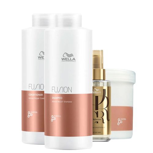Kit Wella Professionals Fusion - Shampoo 1000 ml + Condicionador 1000 ml + Máscara 500 ml + Óleo 100 ml