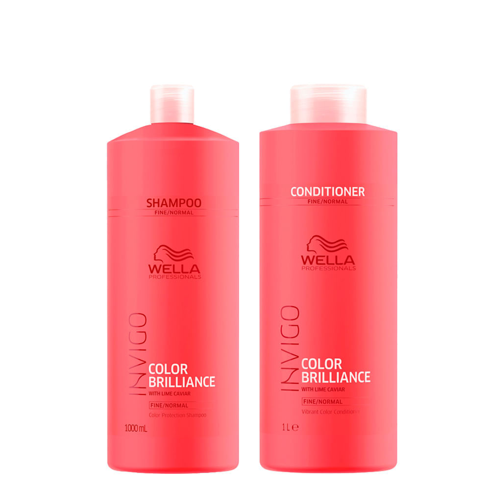 Kit Wella Professionals Invigo Color Brilliance Shampoo 1000ml + Condicionador 1000ml – Preservação da Cor, Brilho Duradouro e Maciez IntensaKit indicado para cabelos coloridos, o Kit Wella Professionals Invigo Color Brilliance com Shampoo 1000ml e Condicionador 1000ml preserva a cor vibrante dos cabelos tingidos, prolonga o brilho intenso e confere maciez extraordinária aos fios.A linha Wella Professionals Invigo Color Brilliance é formulada com ativos antioxidantes poderosos, que combatem os radicais livres responsáveis pelo desbotamento da cor, mantendo os fios vibrantes por até 7 semanas. A fragrância amadeirada cítrica floral proporciona uma experiência sensorial sofisticada durante a rotina. O shampoo Invigo Color Brilliance limpa suavemente o couro cabeludo e os fios, removendo impurezas sem agredir, enquanto o condicionador Invigo Color Brilliance nutre profundamente, selando a cutícula capilar para um brilho que dura. O kit é recomendado para uso profissional, sendo Cruelty Free e dermatologicamente testado.Benefícios do KitPreservação da cor por até 7 semanas, evitando o desbotamento causado pelo tempo e fatores ambientais.Aumento de 150% no brilho dos fios, resultando em cabelos mais radiantes e saudáveis.Redução de 70% do frizz, proporcionando um toque macio e sedoso ao longo do dia.Nutrição intensa que fortalece a fibra capilar, diminuindo a quebra em 50% após o uso contínuo.Hidratação profunda que combate o ressecamento, deixando os fios leves e fáceis de pentear.Ação/Resultado dos AtivosAtivos Antioxidantes: Protegem a cor contra oxidação, selando a cutícula capilar para evitar danos e manter a vibração prolongada.Queratina Hidrolisada: Reconstrói a fibra capilar danificada, devolvendo elasticidade e resistência aos fios coloridos.Complexo Nutritivo: Repõe lipídios essenciais perdidos durante processos químicos, reduzindo o frizz e conferindo maciez intensa.Como Usar o Kit Wella Professionals Invigo Color BrillianceMolhe os cabelos com água morna para abrir a cutícula capilar.Aplique o shampoo (5 ml para cabelos curtos, 10 ml para longos), massageando suavemente o couro cabeludo e os fios por 2 minutos.Enxágue abundantemente com água fria para selar a cutícula.Aplique o condicionador, distribuindo desde as raízes até as pontas; deixe agir por 3 minutos para uma hidratação profunda.Enxágue completamente e finalize como desejar.Itens Inclusos: 1 Shampoo Wella Professionals Invigo Color Brilliance 1000 ml. 1 Condicionador Wella Professionals Invigo Color Brilliance 1000 ml.;Observações: Imagem Meramente Ilustrativa.;Gênero: Unissex;Outlet: Não;Linha: Invigo Color Brilliance;Tipo de Cabelo: Coloridos ou com Mechas;Benefícios PDP: