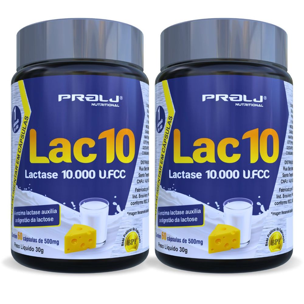 Lac10 10.000 UFCC 60 cápsulas | Auxilia na Digestão da Lactose | Prolj Nutritional - LAC10 10.000 UFCC 60 CÁPSULAS - KIT 2