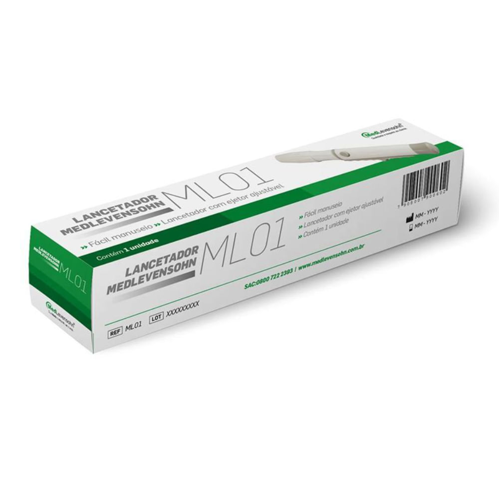 Lancetador Caneta MedLevensohn- Design inovador com seis segmentos de profundidade para ajuste de acordo com a espessura da pele do indivíduo;- Conveniente, seguro e menos doloroso;- Ejetor de lancetas, botão de disparo e capa protetora da lanceta para melhor controle do disparo.