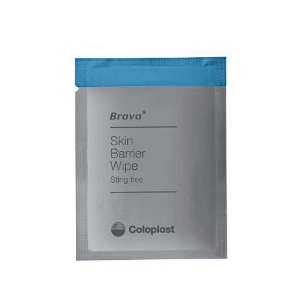 Lenço Barreira de Pele para Estomia Brava - Coloplast desenvolvido para proteção da pele ao redor do estoma (pele periestoma).Composição: Produto a base de silicone; Não contém álcool; Embalagem: Discreta que facilita o uso em viagens ou atividades fora do domicílio. Código do Produto: 12021.;videoUrl: XgeyDhzIL4o;Indicação: Para proteção da pele intacta, contra os efeitos agressivos de excreções do corpo e de adesivos; Para pessoas com diferentes tipos de estomas.;Informação Adicional: Deixa uma película fina, permitindo que a pele respire, protegendo-a contra danos; Protege contra possíveis danos causados pelos efluentes (ex: fezes ou urina), atuando na prevenção das dermatites periestomas (áreas de vermelhidão ao redor do estoma); Amigável à pele, pois não contém álcool; Seca em segundos e não deixa resíduo sobre a pele, permitindo a aplicação de adesivos; Não afeta a fixação da base adesiva.;Instruções: Modo de Usar: 1º Passo: Garanta que a pele esteja limpa e seca; 2º Passo: Para abrir rasgue o sachê, retire o lenço e desdobre-o; 3º Passo: Suavemente aplique o produto sobre as áreas a serem protegidas; 4º Passo: Assim que a pele estiver completamente seca, aplique o produto adesivo; 5º Passo: Uma nova aplicação do Lenço Barreira Brava é necessária a cada troca do produto adesivo.;Precauções: Não utilize diretamente nos leitos das feridas, olhos ou membranas mucosas.;