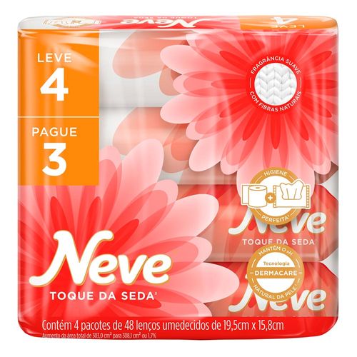 Kit Lenço Umedecido Neve Toque De Seda 4 Pacotes com 48 Unidades