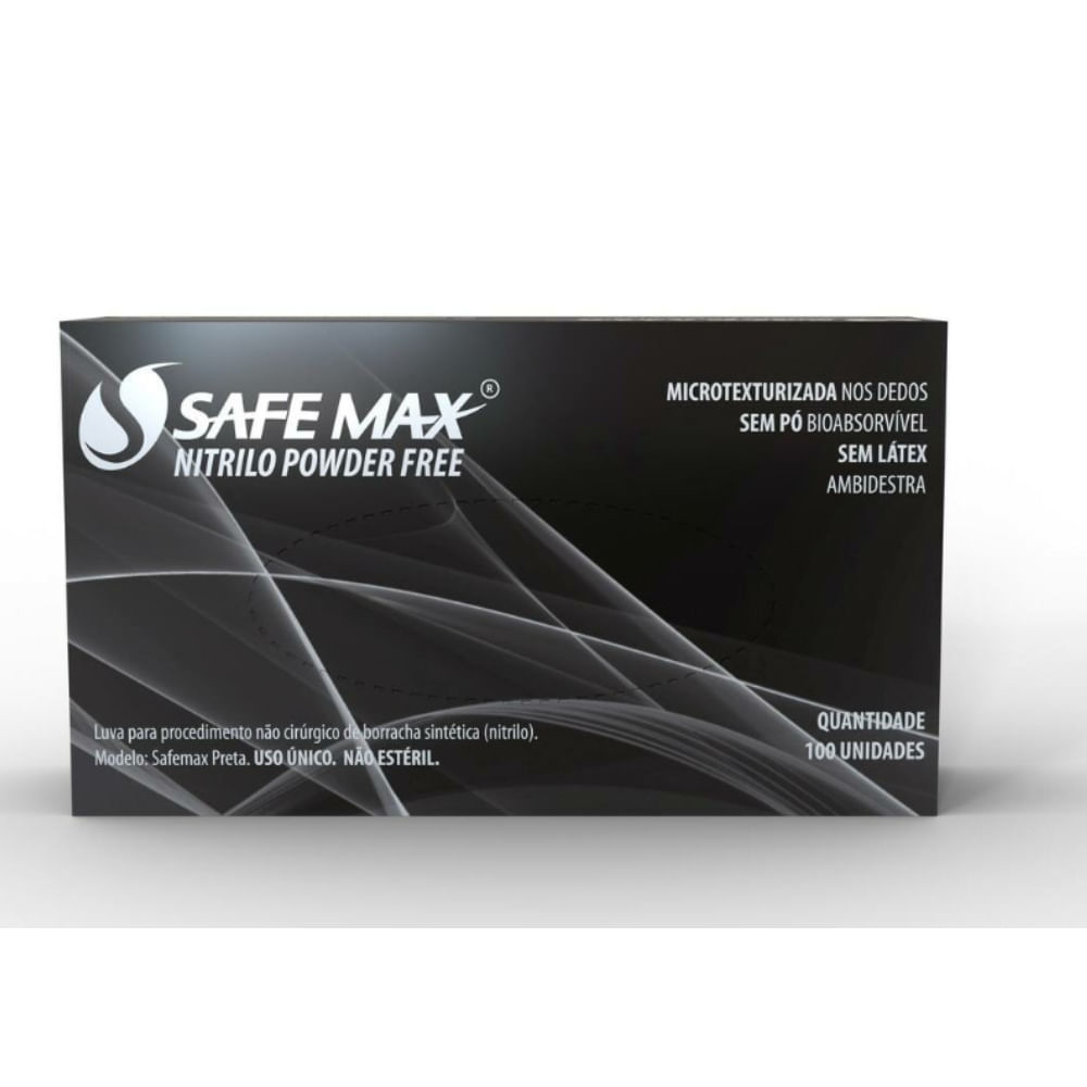 Luva para Procedimento Nitrílica Safemax Preta - Supermax P