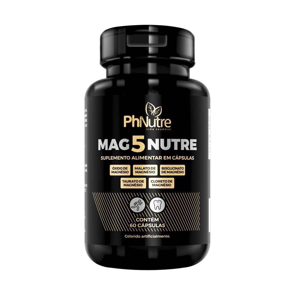 O MAG 5 Nutre PHNutre é essencial para funções metabólicas, neuromusculares e estruturais. Ideal para a manutenção da saúde óssea, equilíbrio energético e bom funcionamento do sistema nervoso. Atua como cofator enzimático na regulação da contração/relaxamento muscular, transmissão de impulsos nervosos, equilíbrio do sistema nervoso central, síntese proteica e metabolismo da glicose.Benefícios:- Melhora o desempenho físico e a recuperação muscular;- Favorece o equilíbrio emocional e a redução do estresse;- Reduz a fadiga e o cansaço;- Contribui para ossos e dentes mais fortes;- Suporte ao sistema imunológico.Recomendação de uso:Ingerir 2 (duas) cápsulas ao dia. Produto indicado para o grupo populacional Adulto > 19 anos.INGREDIENTES:Magnésio (óxido de magnésio, malato de magnésio, bisglicinato de magnésio, taurato de magnésio e cloreto magnésio) antiumectantes silicato de magnésio, estearato de magnésio e dióxido de silício. Composição da cápsula: Gelificante gelatina, umectante glicerina, corante dióxido de titânio. NÃO CONTÉM GLÚTEN.