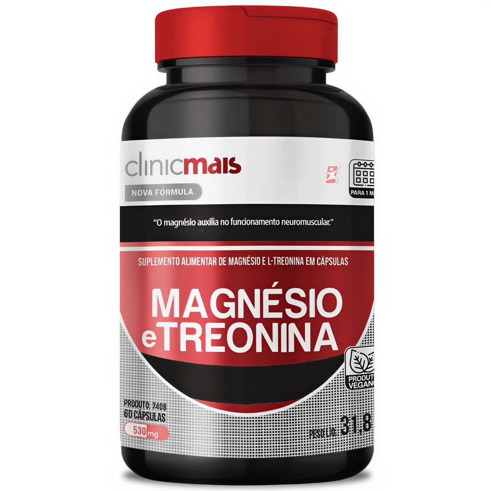 MAGNESIO E TREONINA PRODUTO VEGANO 60 CÁPSULAS - CLINICMAIS
