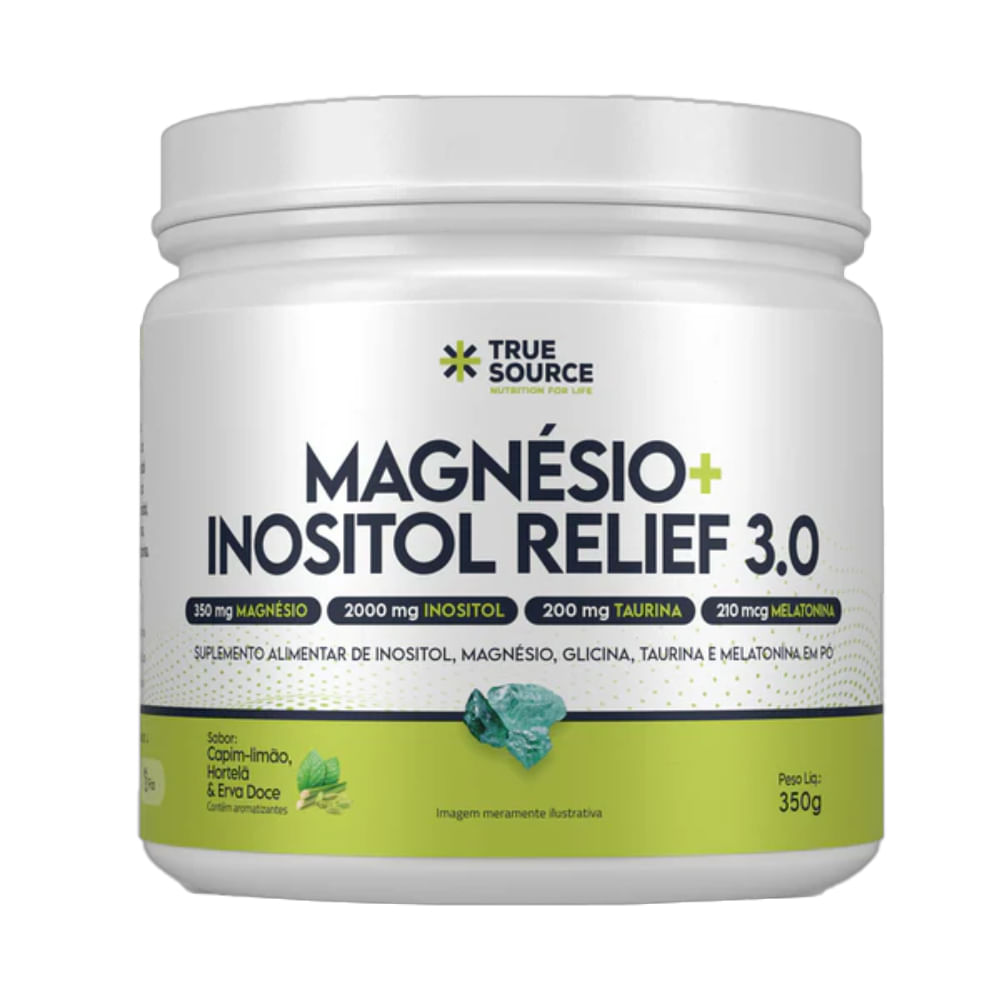 O Magnésio + Inositol Relief 3.0 Capim Limão True Source combina dois componentes essenciais para o bom funcionamento do organismo. O Magnésio + Inositol Relief 3.0 Capim Limão True Source leva a combinação do magnésio com o inositol auxilia nos ossos e dentes, funcionamento muscular, no funcionamento neuromuscular, no metabolismo energético, no equilíbrio de eletrólitos e no processo de divisão celular. Ingredientes: Inositol, hortelã em pó, bisglicinato de magnésio, glicina, capim-limão em pó, maçã em pó, taurina, erva-doce em pó, melatonina, acidulante ácido cítrico, aromatizantes, antiumectante dióxido de silício e edulcorante glicosídeos de esteviol de stevia rebaudiana bertoni. NÃO CONTÉM GLÚTEN.  Sobre a marca: Nascemos da união de um time de especialistas de peso que formularam produtos altamente eficientes e saborosos. Depois de 2 anos de pesquisas e estudos do mercado nacional e internacional, nossos médicos, nutricionistas e chefs de cozinha chegaram à fórmula perfeita. Sobre a Boomi: A Boomi é  um mercado online com produtos saudáveis e sustentáveis, que fazem bem à saúde e ao planeta. São mais de 3.500 produtos de 150 pequenas marcas para você!Nascemos pequenos, mas com um propósito gigante: conectar pessoas a produtos acessíveis que tragam benefícios para a saúde, para o planeta e para a sociedade. Para isso, buscamos ofertar produtos de pequenos agricultores e pequenas empresas em um mundo cada vez mais veloz e que busca mais produtividade. Vamos sempre buscar levar o melhor para você!Nosso propósito é conectar alimentos saudáveis e produtos naturais e sustentáveis a pessoas preocupadas com a sua saúde e com a saúde do planeta. Com preço justo, comodidade e informações confiáveis.Curadoria: Nossos produtos são criteriosamente validados pela nossa curadoria de produtos saudáveis, que busca produtores e empresas que compartilham do nosso alto padrão de qualidade. Da enorme lista de ingredientes banidos à preocupação do bem estar animal, desde o primeiro dia seguimos fieis aos nossos valores, trabalhando com transparência e práticas sustentáveis. Vendemos apenas produtos que admiramos e que nos orgulha.